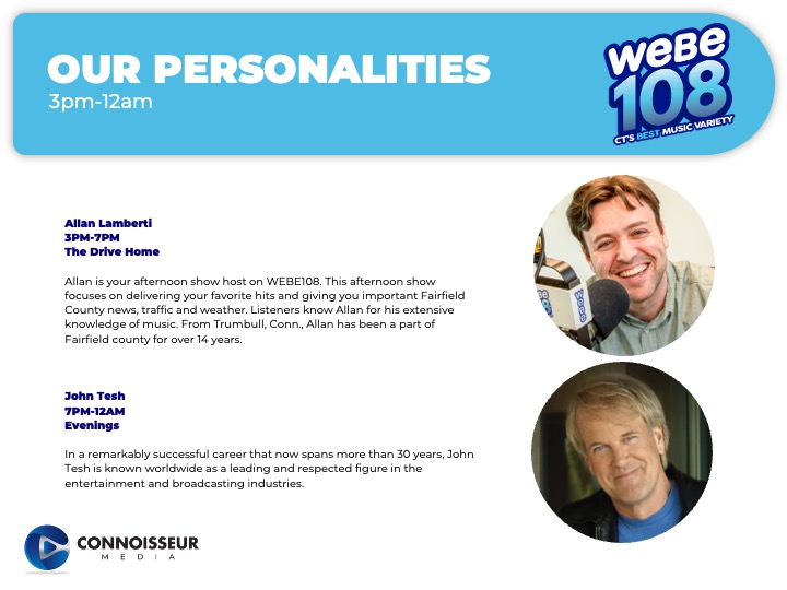 WEBE108 plays Connecticut’s Best Music Variety featuring Taylor Swift, Maroon 5, Madonna, Whitney Houston and all your favorite from the ’80s, ’90s and Now. As one of the most powerful stations in Southern Connecticut, WEBE entertains listeners throughout the region with legendary personalities including Storm N Norman and Danny Lyons.